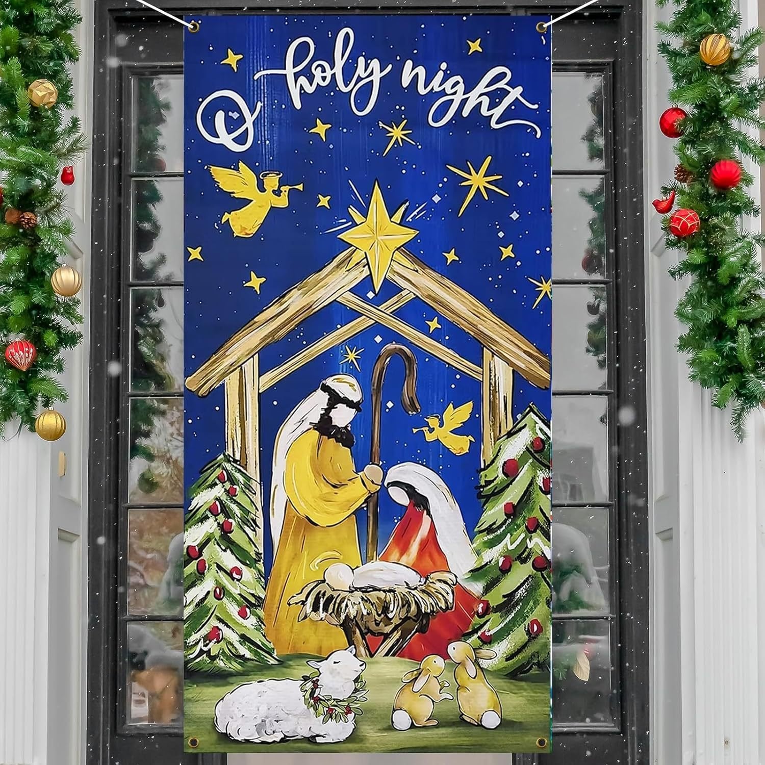 Ünnepelje az évszakot ezzel a karácsonyi ajtó koszorúval. amelyen hatalmas masni. arany csengők és buja zöld díszek találhatók. Úgy tervezték. hogy vidám és barátságos hangulatot teremtsen. és azonnal ünnepi hangulatot varázsoljon bejáratához.