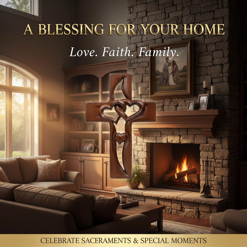 Ez a fali dekoráció egy kereszt sziluettel rendelkezik. amelyet szív alakú részletek emelnek ki. és mélységet és szimbolikát adnak minden térnek. Úgy tervezték. hogy önmagában vagy egy galériafal részeként is gyönyörűen mutasson. és nyugodt. átgondolt jelenlétet kölcsönöz a mindennapi belső tereknek.